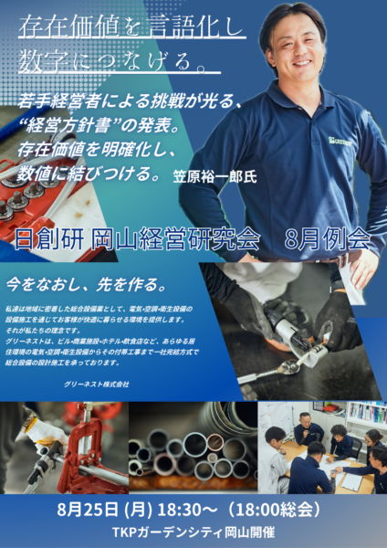 経営方針書委員会Ⅰの方針「未来を描き、今を動かす」を体現する例会。若手の挑戦を通して、理念と数字、社員と経営者の意志をつなぐ「経営方針書の力」を再認識する。