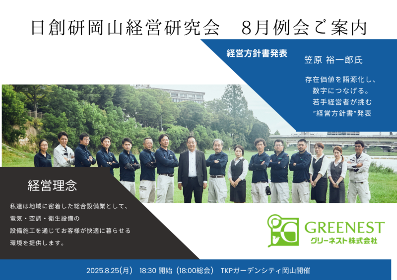 経営方針書委員会Ⅰの方針「未来を描き、今を動かす」を体現する例会。若手の挑戦を通して、理念と数字、社員と経営者の意志をつなぐ「経営方針書の力」を再認識する。