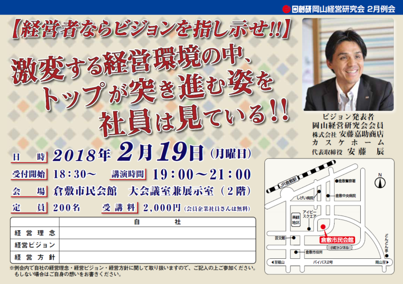 2月19日(月曜日) 19:00~ 倉敷市民会館 大会議室兼展示場にて開催いたします。