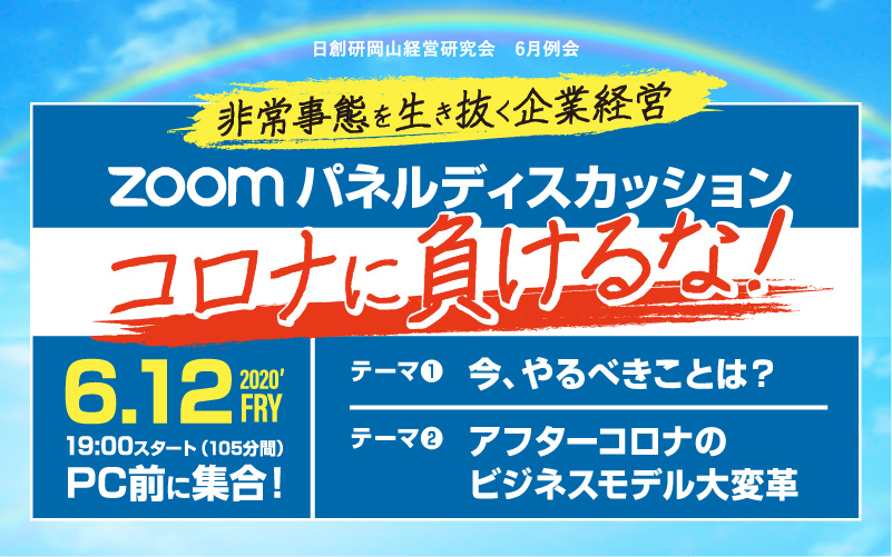 ZOOMを活用し半年ぶりに岡山経営研究会の例会をパネルディスカッション形式で開催いたします。
