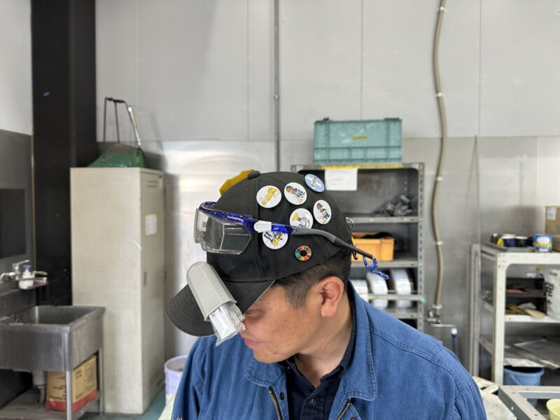 今回のベンチマークの担当者さんや幹部社員さんを親のような優しい目で見守る優しい表情、工場の見学中に少しでもいいから何かの改善点を見つけようと言う厳しい表情、勲章のようなバッチがたくさんついたヘルメットを社員さんからいじられ照れた表情…。これはベンチマークで現場に居合わせないと見ることができない表情です。
