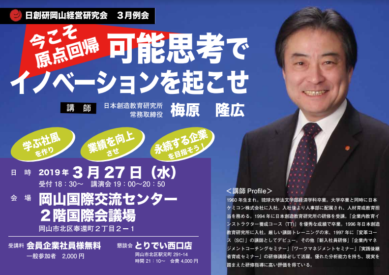 今回は、日本創造教育研究所、大阪センター所長「梅原講師」にお越しいただきます。